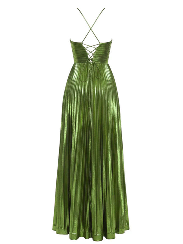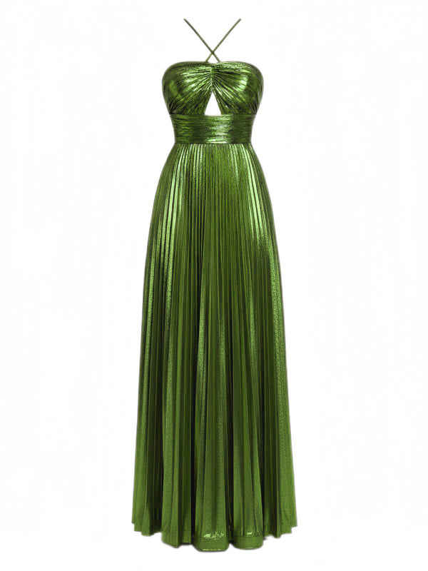 Robe plissée dorée à dos nu et col croisé années 1930 – Retro Stage-France
