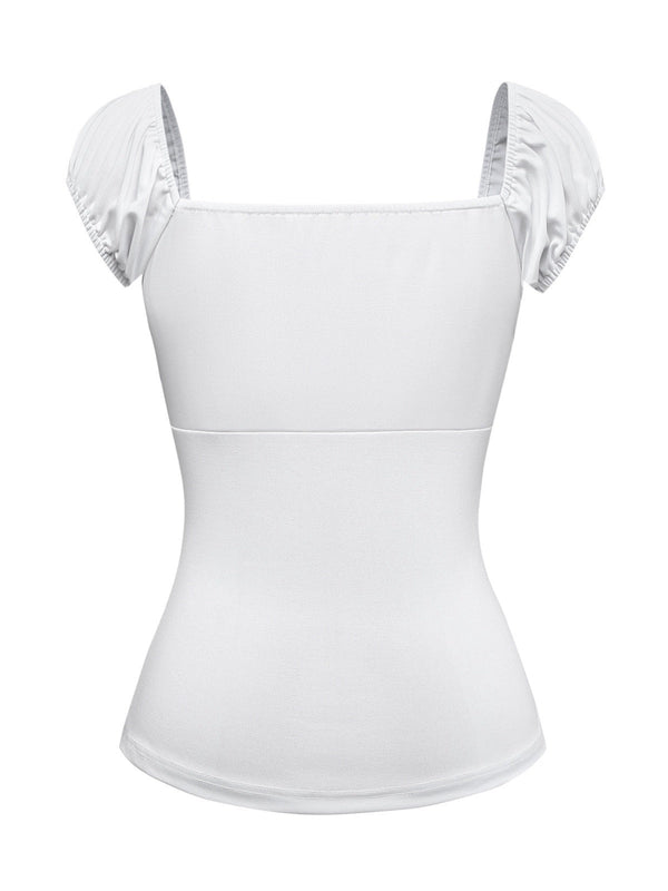 [Prévente] Haut Blanc Dentelle Ruchée Manches Bouffantes Col Carré Années 1940