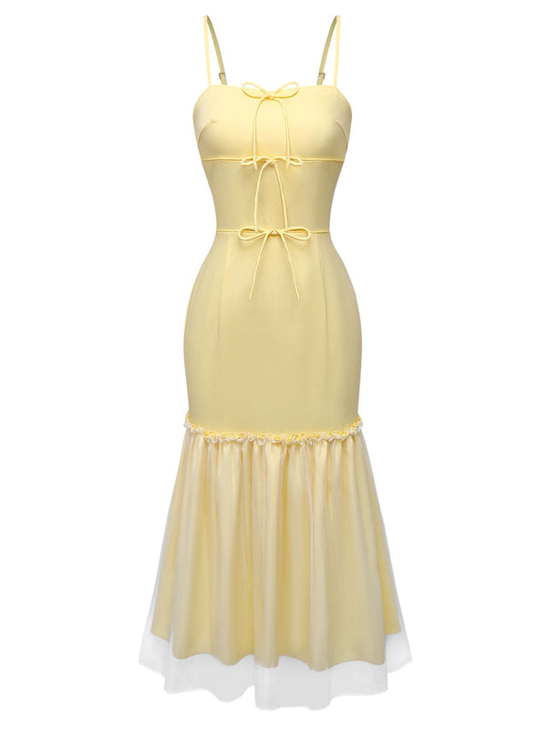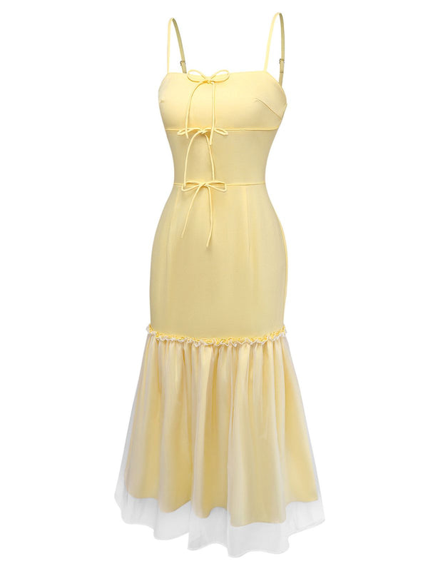 [Prévente] Robe à fines bretelles en résille jaune pâle années 30 – Retro Stage-France