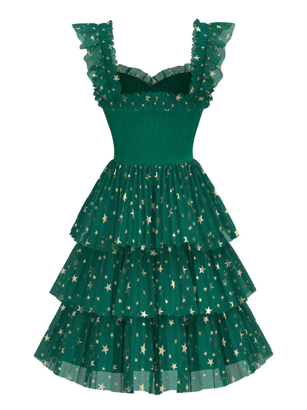 [Pré-vente] Robe à volants en maille avec pompons en forme d'étoiles de Noël années 1970