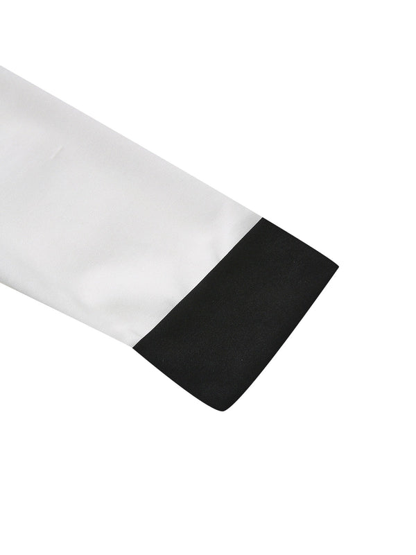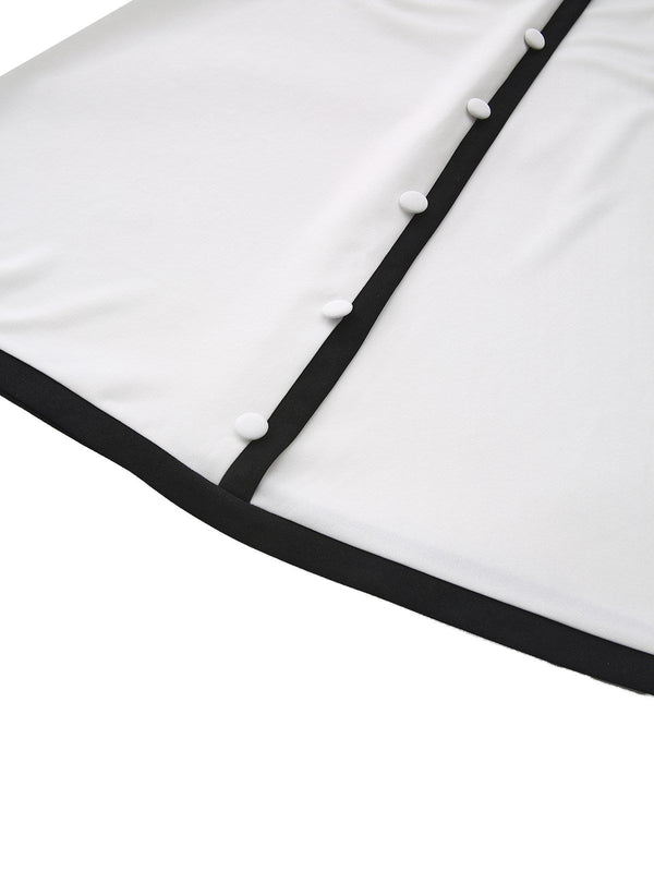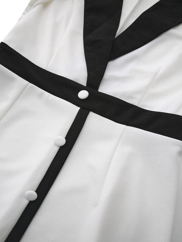 Robe boutonnée à col en V profond blanche et noire années 1940 – Retro Stage-France