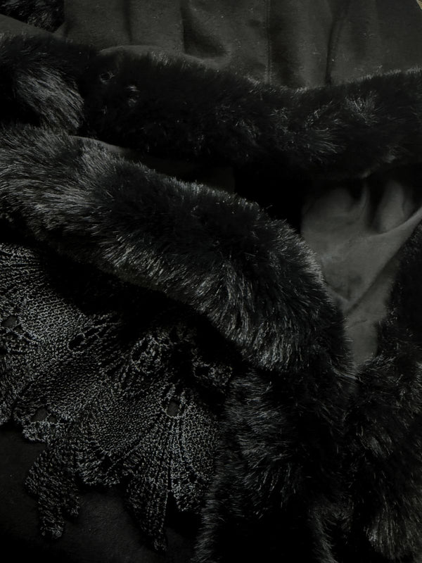 [Pré-vente] Cape à capuche style chat noire et fourrure synthétique des années 1960