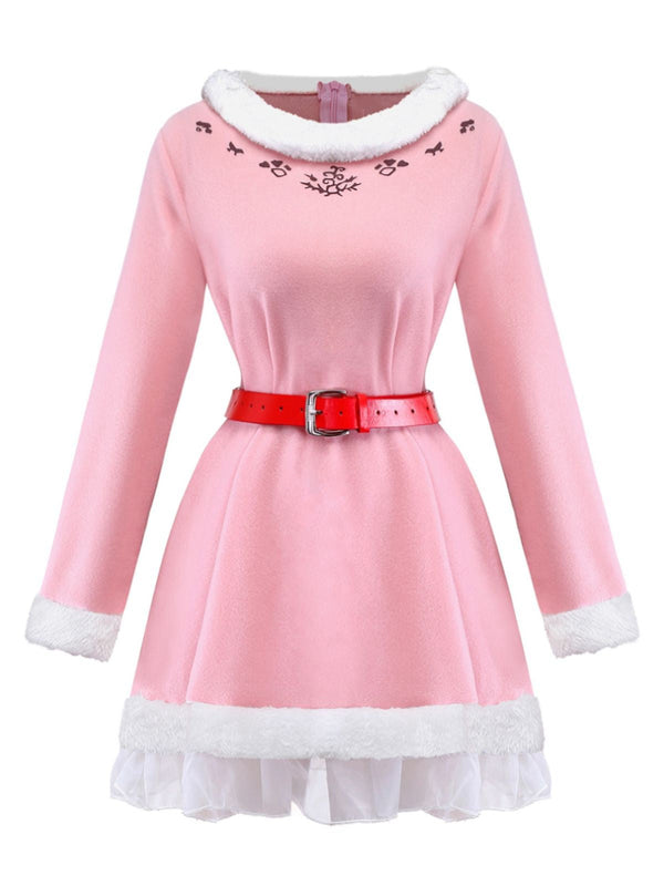 Ensemble robe rose à bordure peluche elfe de Noël années 1950 – Retro Stage-France