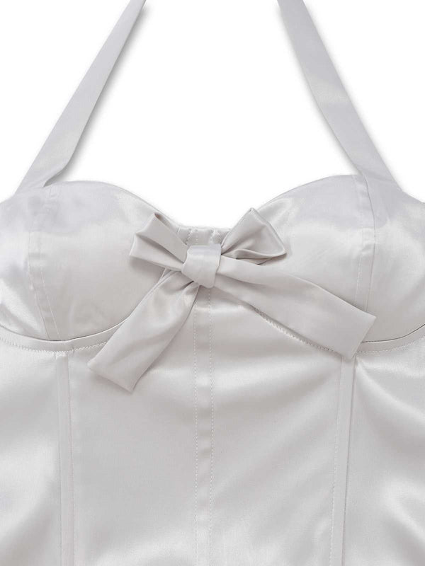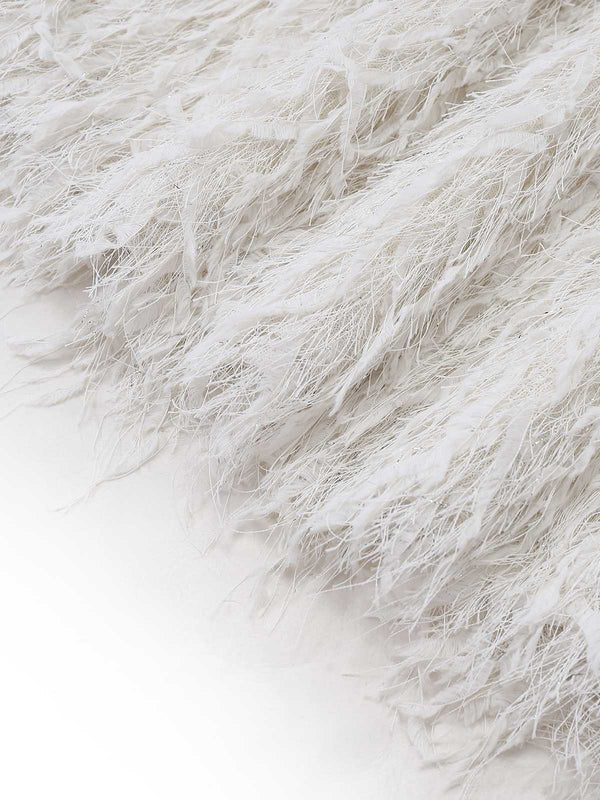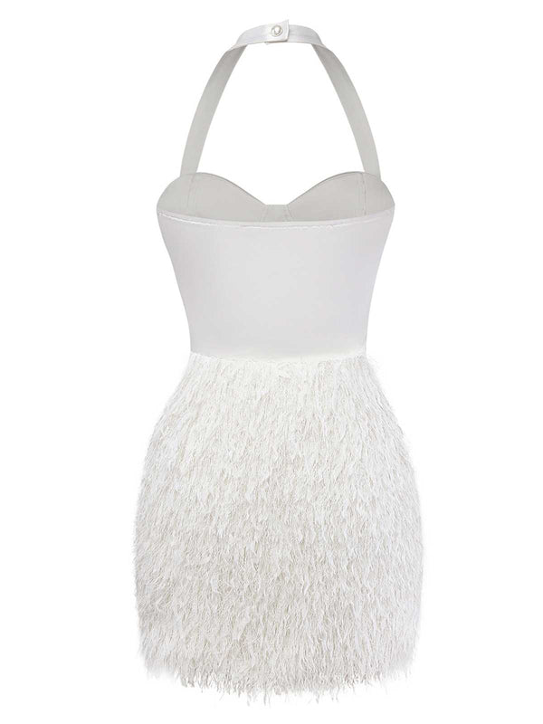 [Prévente] Robe bustier blanche en satin à franges de plumes années 1960