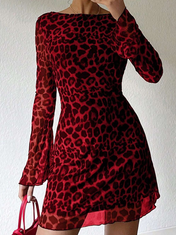 Robe léopard transparente manches cloche et dos nu des années 1980 – Retro Stage-France