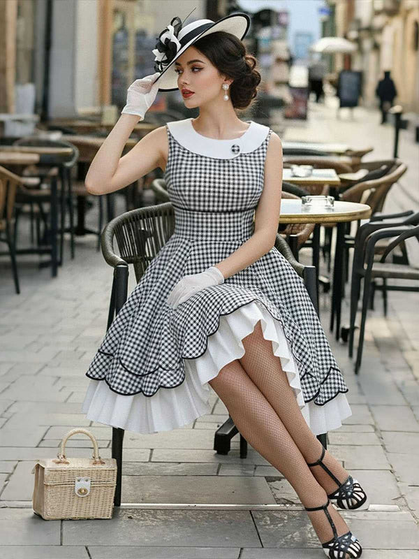 [Pré-vente] Robe à volants en vichy noir et blanc des années 1950