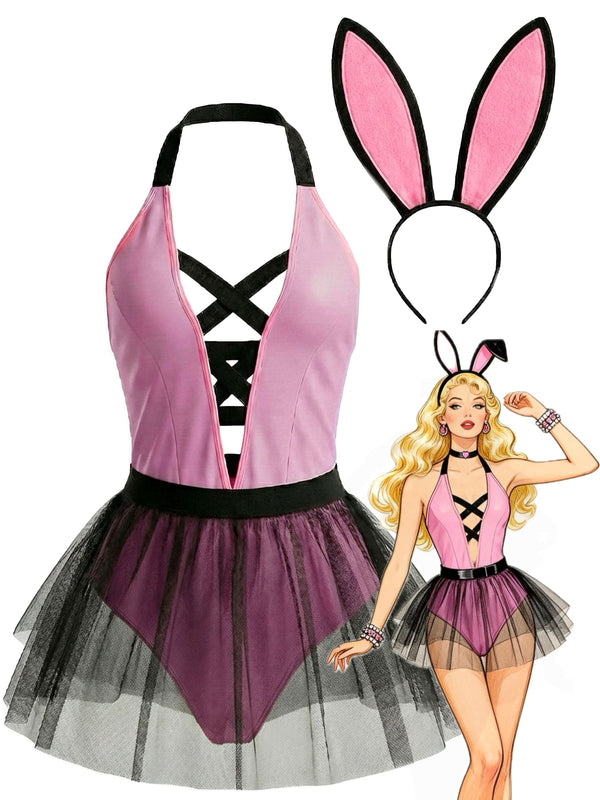 Ensemble de costume de lapin en tulle rose à bretelles années 1950 – Retro Stage-France