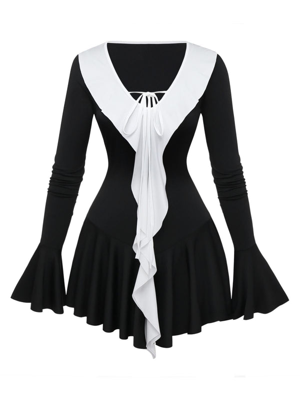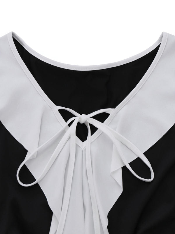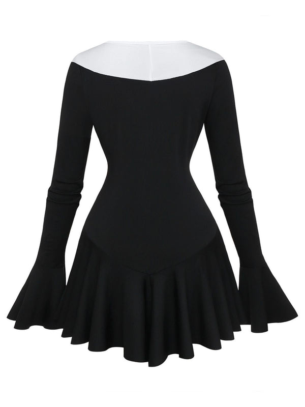 Robe péplum à volants noire et blanche années 1960 – Retro Stage-France