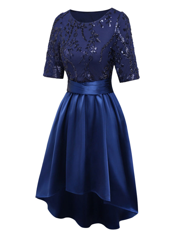 [Prévente] Robe bleu foncé en satin brodée de sequins style années 1950