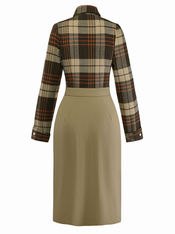 [Prévente] Robe kaki à carreaux col chemise années 1940 et ceinture – Retro Stage-France