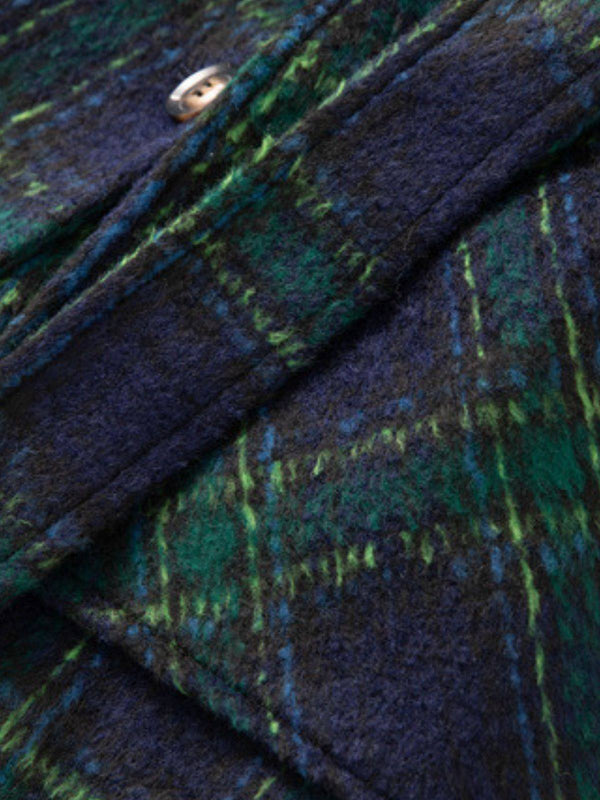Manteau long vert à carreaux Blackwatch col cranté des années 1940 – Retro Stage-France