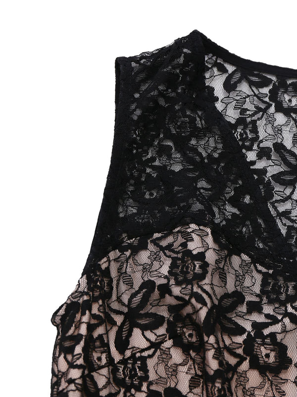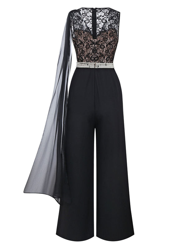 [Prévente] Combinaison noire en dentelle et maille avec ceinture de perles années 50