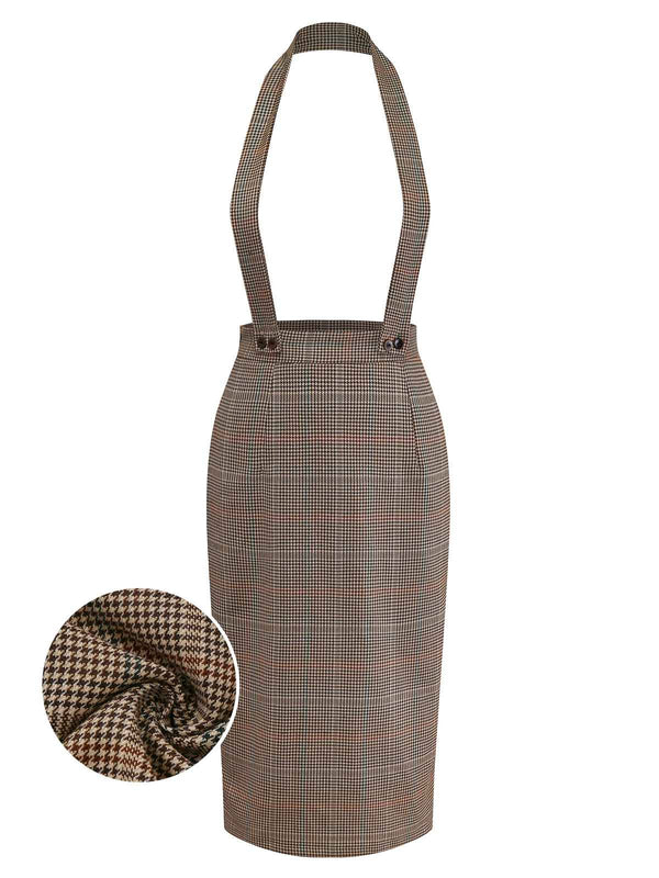 [Prévente] Jupe crayon à bretelles pied-de-poule marron années 60