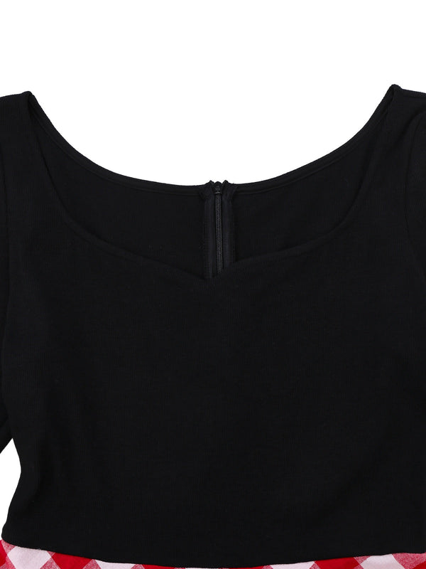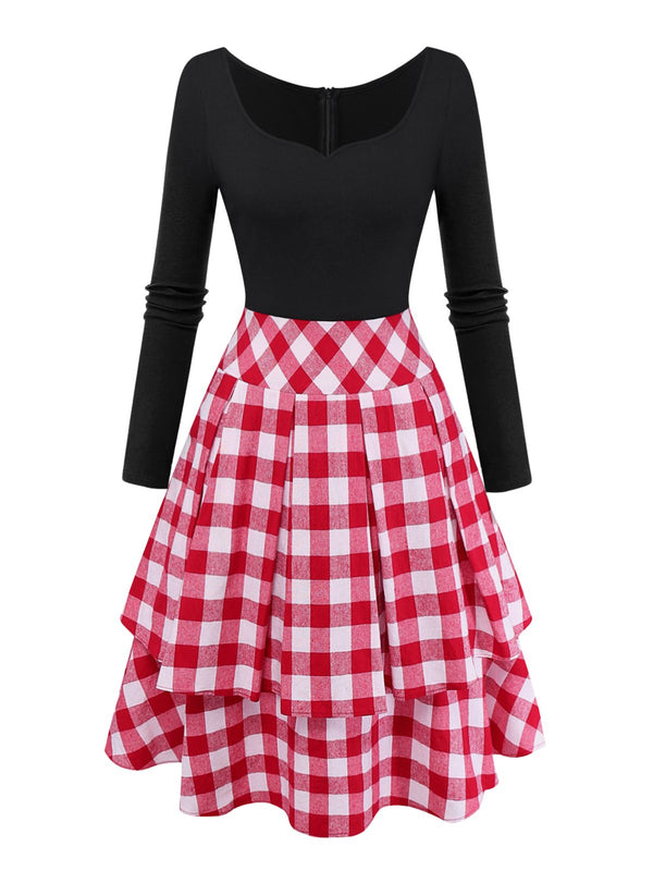 [Prévente] Robe rouge à carreaux en coton tricoté col cœur des années 1950