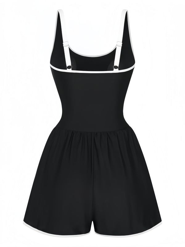 Maillot de bain une pièce tankini à fleurs noires années 1940 – Retro Stage-France