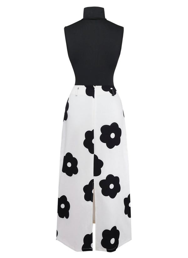2PCS haut col roulé noir et jupe fleurie années 30 – Retro Stage-France