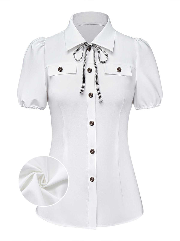 [Prévente] Chemisier blanc carreaux boutonné et nœud papillon années 1940