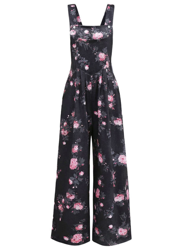 Combinaison pantalon large à imprimé floral vert années 1940 – Retro Stage-France