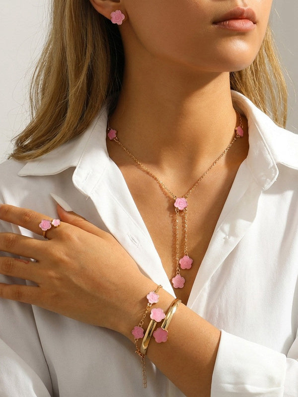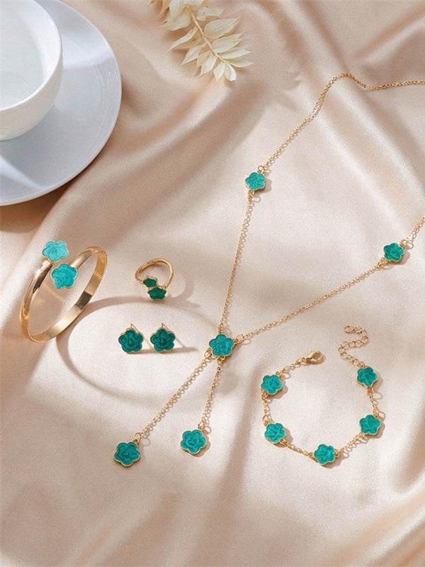 Contenu de l'emballage : 1 collier, 1 bague, 1 bracelet, 1 paire de boucles d'oreilles, 1 chaîne
