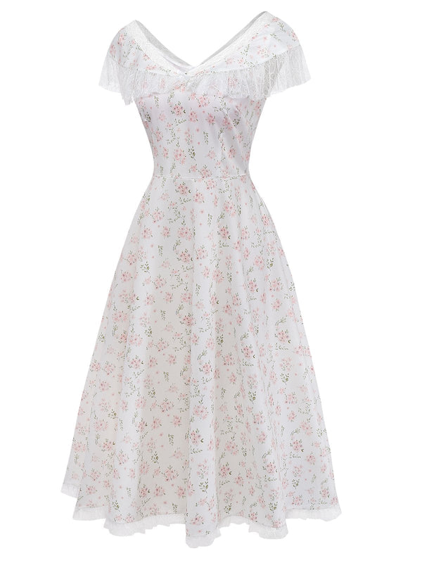 [Prévente] Robe beige en dentelle florale à épaules dénudées années 19 – Retro Stage-France