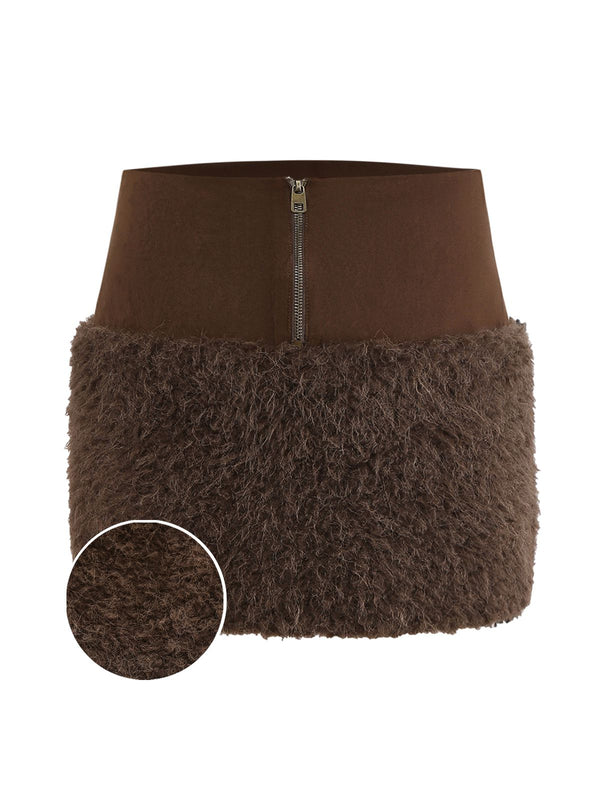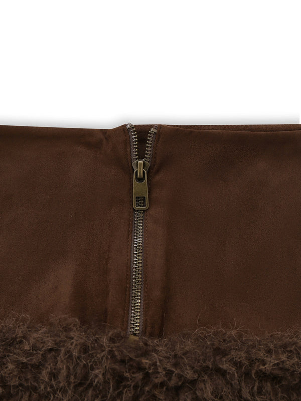 [Prévente] Jupe patchwork en fausse fourrure marron foncé des années 60
