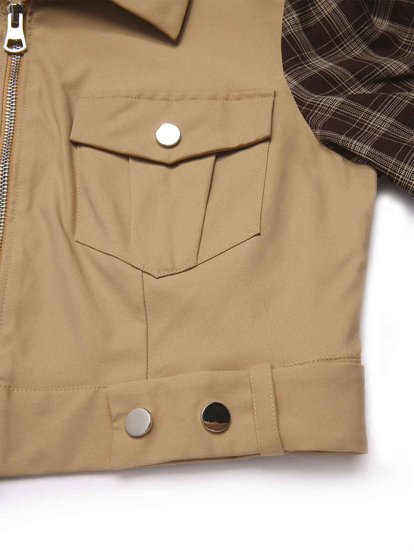 [Pré-vente] Veste zippée à revers tartan kaki des années 1960 – Retro Stage-France
