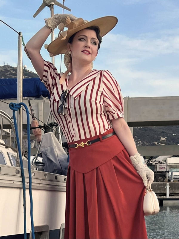 2PCS Chemisier rayé rouge orange des années 1950 et jupe plissée – Retro Stage-France