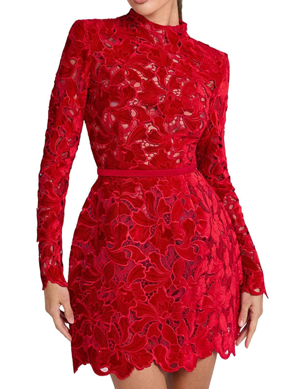 Robe col roulé mi-long en dentelle florale floquée années 1960 – Retro Stage-France