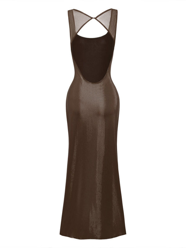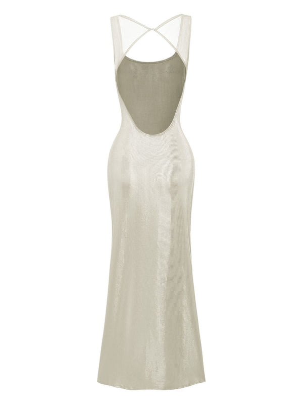 Robe uni maille pailletée boucle col carré 1980s
