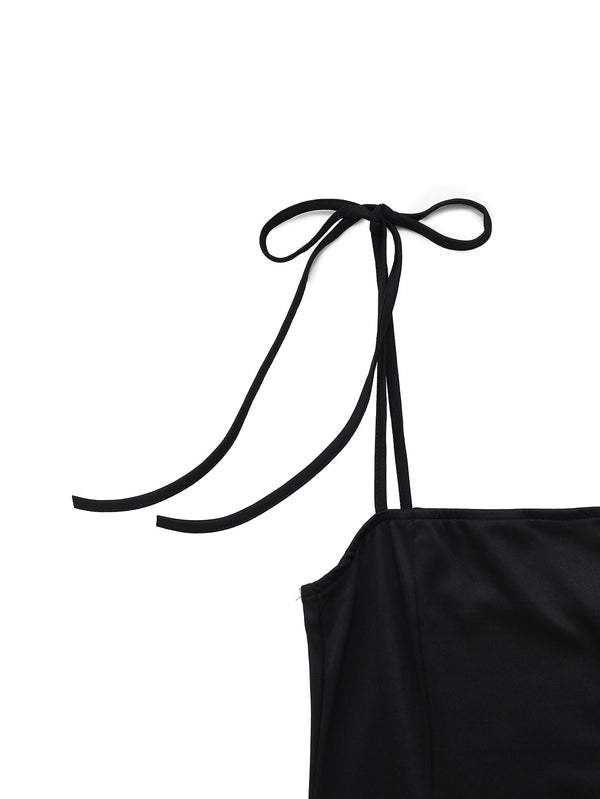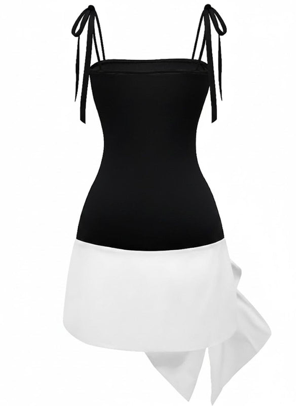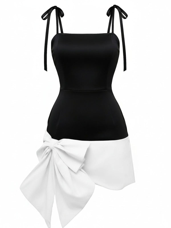 Robe noire à col carré et nœud papillon rouge années 60 – Retro Stage-France