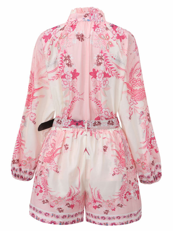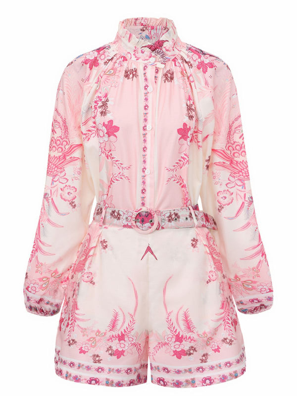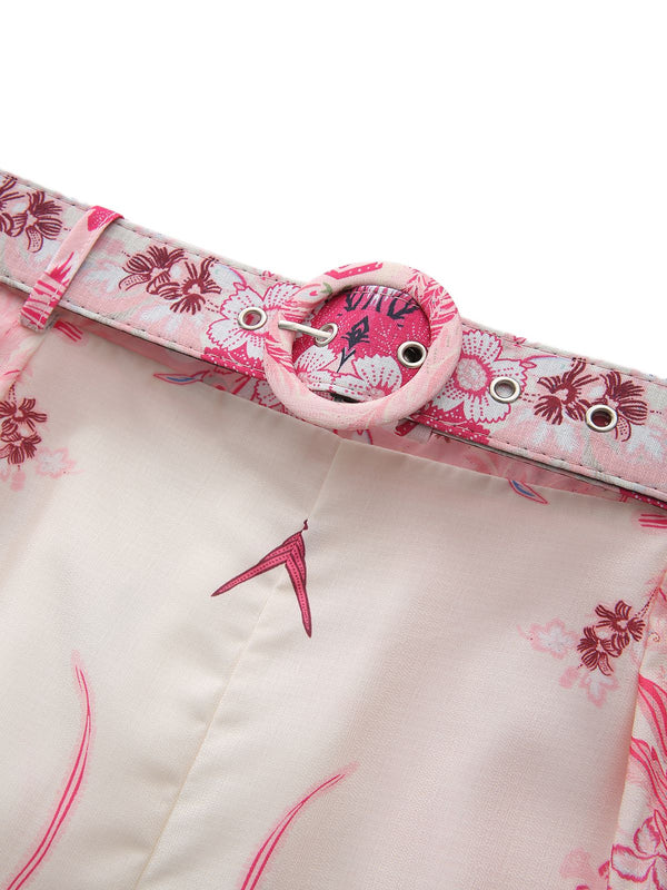 2PCS Chemisier fleuri bohème rose et short taille haute années 1970 – Retro Stage-France