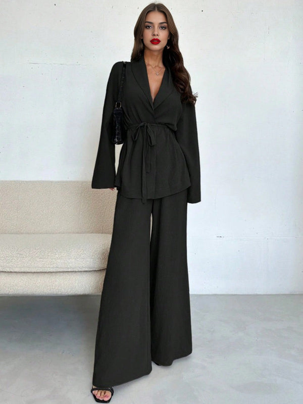 2PCS Ensemble blazer et pantalon lacets style années 1960