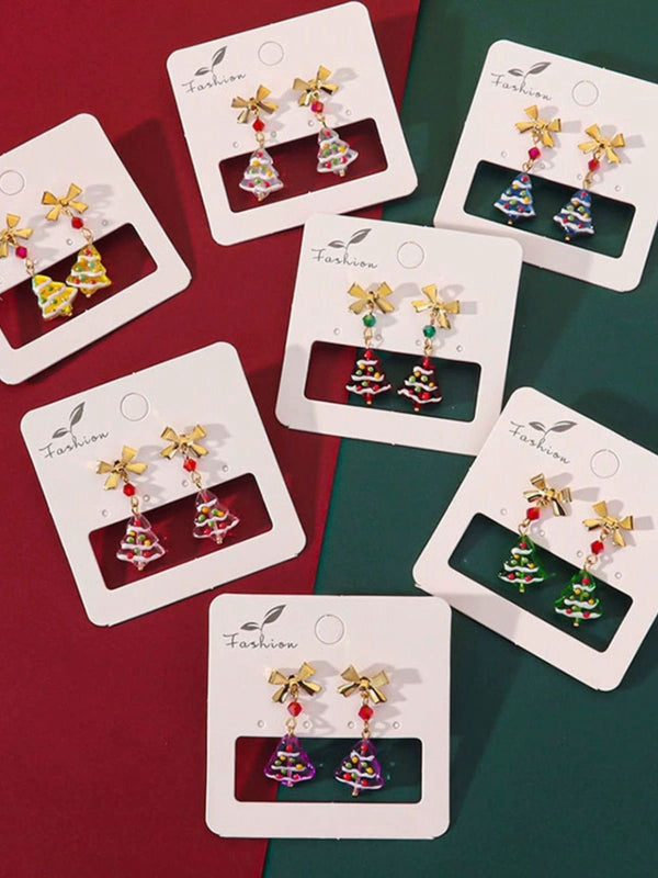 Boucles d'oreilles pendantes vintage de nœud papillon doré pour sapin de Noël