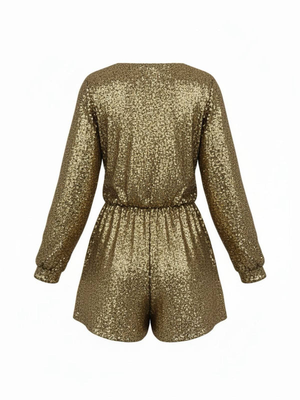 Combishort à manches longues et col en V à sequins années 1970 – Retro Stage-France