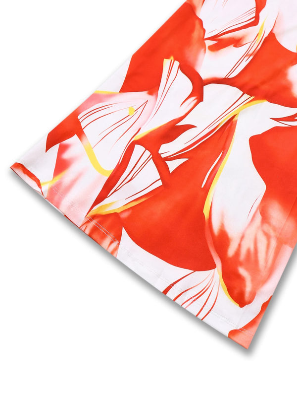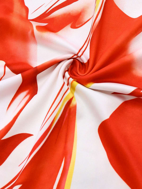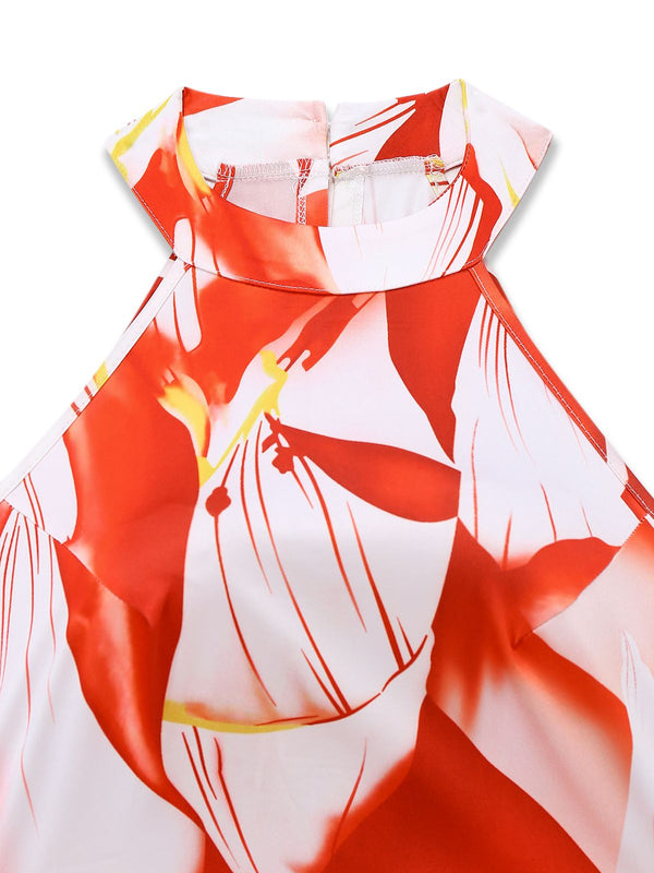 Combinaison rouge sans manches imprimés de fleurs abstraites avec cein – Retro Stage-France