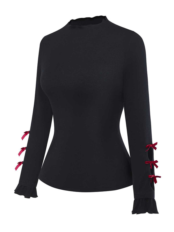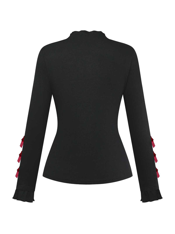 [Prévente] Haut en maille noire à col roulé et nœud décoratif années 50