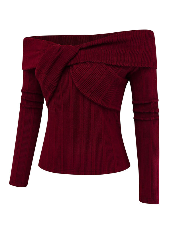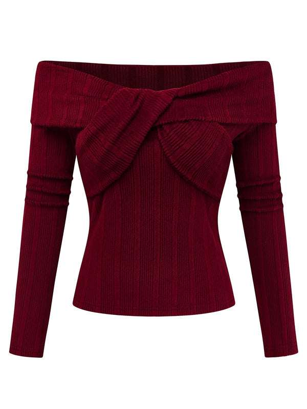 [Pré-vente] Haut en maille torsadée rouge vin à épaules dénudées des a – Retro Stage-France