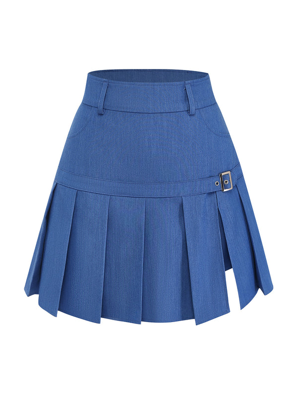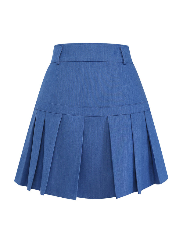 [Prévente] Jupe plissée jean bleu boucle 1960s – Retro Stage-France