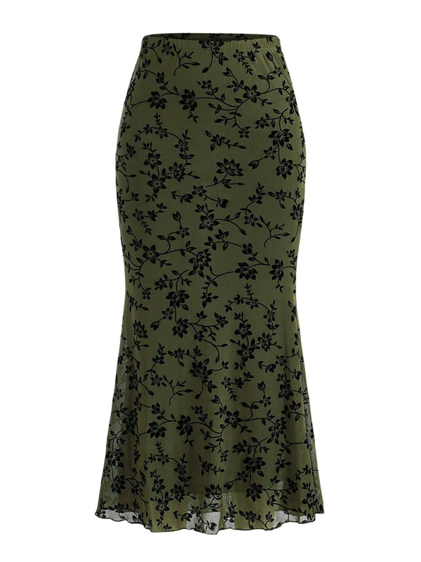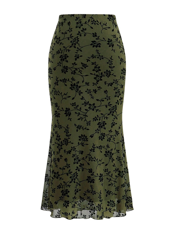 Jupe sirène maxi imprimé floral floqué années 1930 – Retro Stage-France
