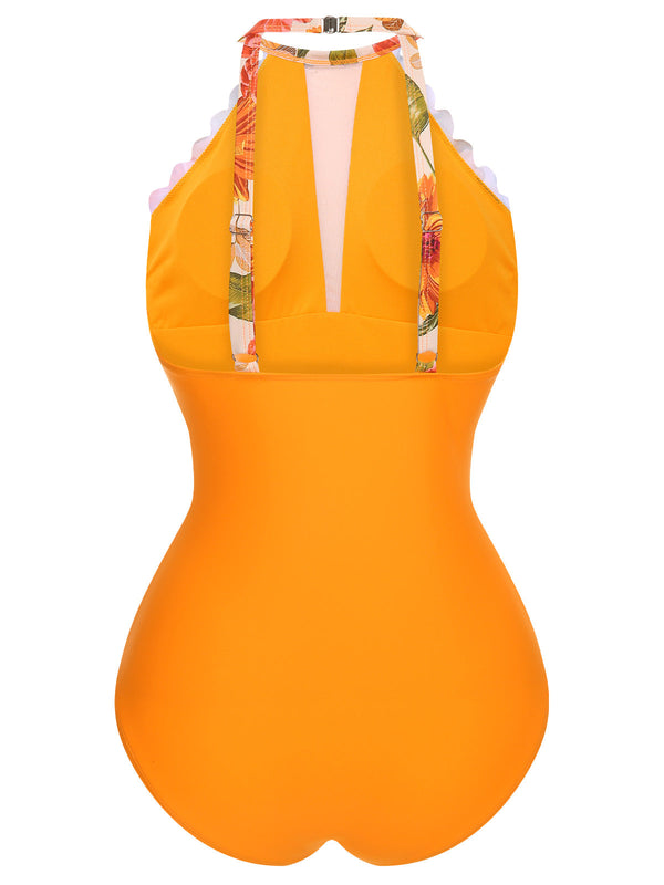 Maillot de bain une pièce floral orange des années 1960 – Retro Stage-France