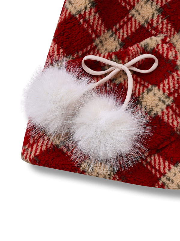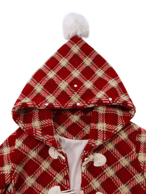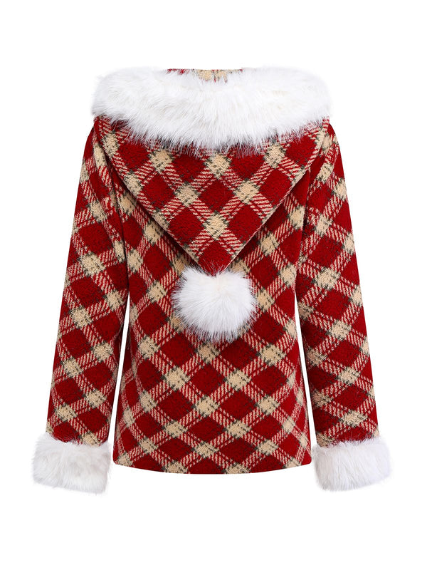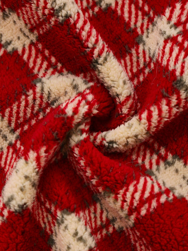 [Prévente] Manteau polaire à carreaux rouge avec col en fourrure année – Retro Stage-France