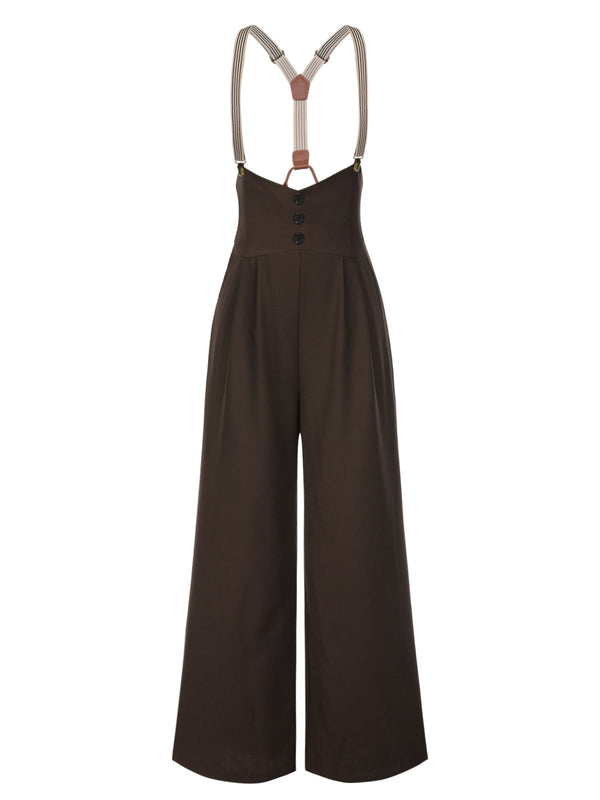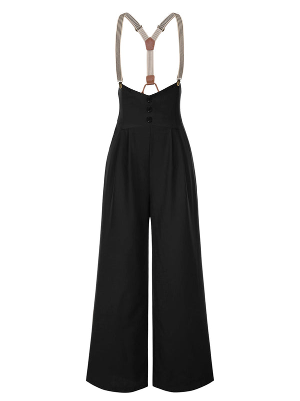 [Prévente] Pantalon à bretelles noire à bretelles boutonné années 1950 – Retro Stage-France