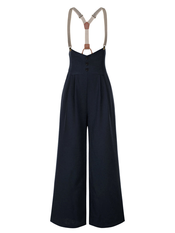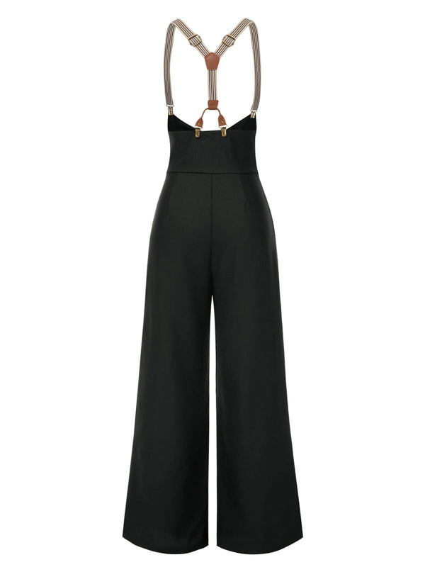 [Prévente] Pantalon à bretelles noire à bretelles boutonné années 1950