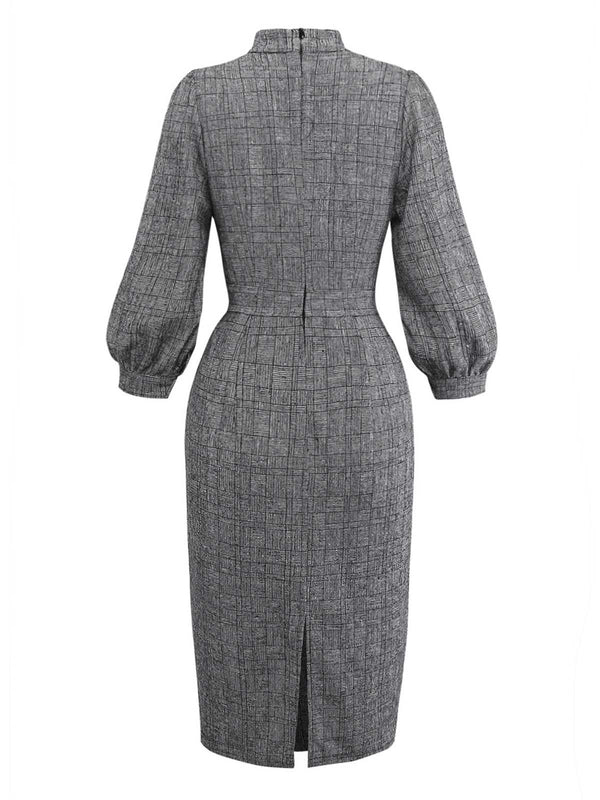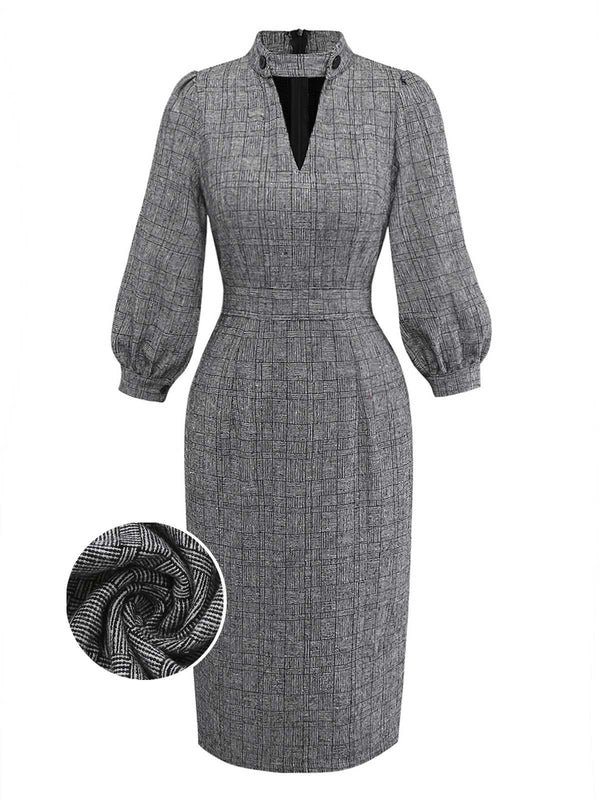 [Prévente] Robe crayon boutonnée à col montant et manches bouffantes des années 1960