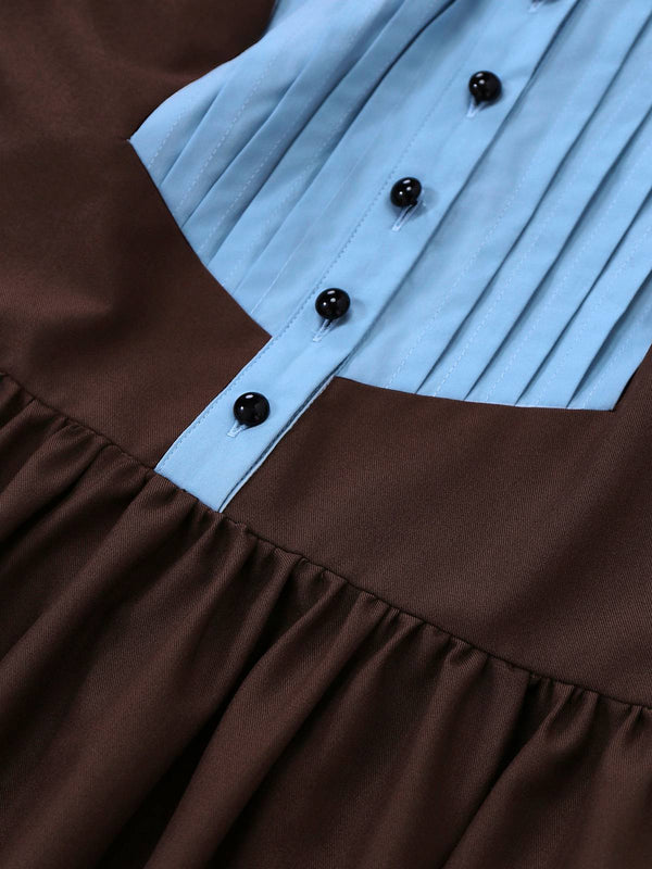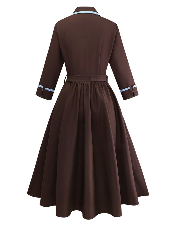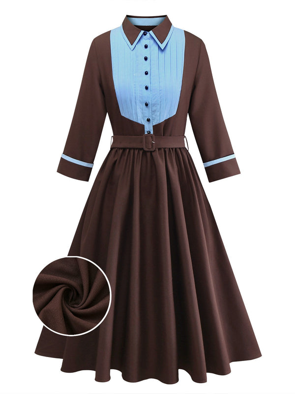 [Prévente] Robe marron col revers plissés contrastés années 1940 – Retro Stage-France