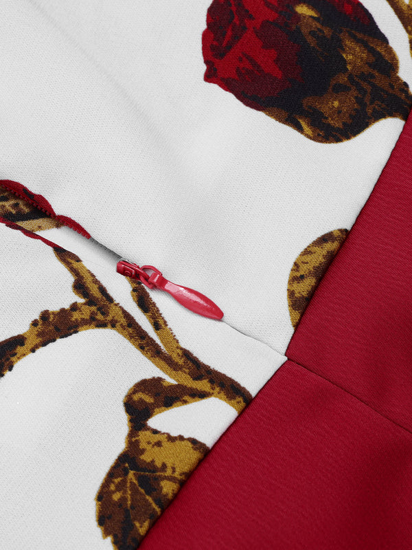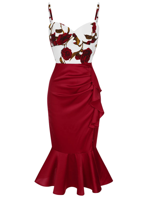 [Prévente] Robe sirène rouge à bretelles spaghetti et roses des années 1930